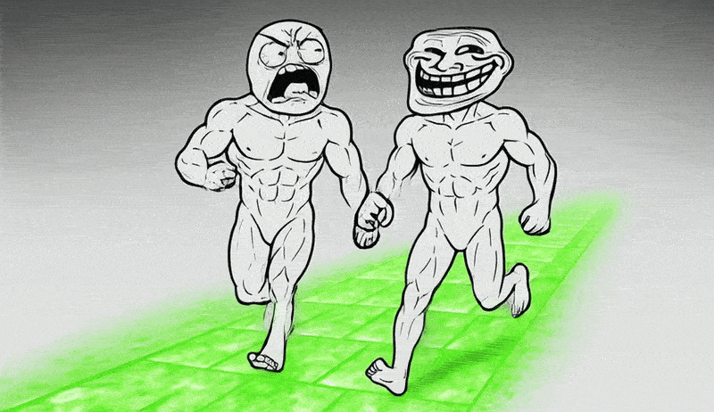 RAGEGUY was first introduced on the 4chan /b/ imageboard in 2008. The image consisted of a 4-pane comic made in MS Paint portraying the “toilet splashback” experience. The first three panes described the incidence and in the fourth pane, a drawing of RAGEGUY screaming appeared with a caption saying